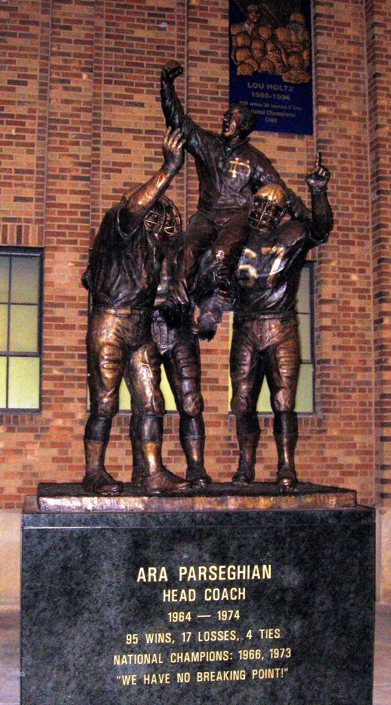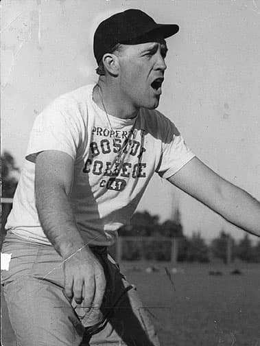 Francis William Leahy (August 27, 1908 – June 21, 1973) was an American football player, coach, college athletics administrator, and professional sports executive. He served as the head football coach at Boston College from 1939 to 1940 and at the University of Notre Dame from 1941 to 1943 and again from 1946 to 1953, compiling a career college football record of 107–13–9. His winning percentage of .864 is the second best in NCAA Division I football history, trailing only that of fellow Notre Dame Fighting Irish coach, Knute Rockne, for whom Leahy played from 1928 to 1930. Leahy played on two Notre Dame teams that won national championships, in 1929 and 1930, and coached four more, in 1943, 1946, 1947, and 1949. Leahy was also the athletic director at Notre Dame from 1947 until 1949 when he passed the role to the Fighting Irish basketball coach, Moose Krause, so that he could focus on football coaching. Leahy served as the general manager for the Los Angeles Chargers of the American Football League (AFL) during their inaugural season in 1960. He was inducted into the College Football Hall of Fame as a coach in 1970.