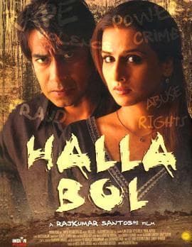 Halla Bol is a Hindi drama film released on 11 January 2008, and directed by Rajkumar Santoshi. Halla Bol stars Ajay Devgan and Vidya Balan in pivotal roles and a number of celebrities from the Hindi film industry appear as themselves. Produced by Samee Siddiqui, the film's score and soundtrack was composed by Sukhwinder Singh, while Nataraja Subramanian and Steven Bernard were the cinematographer and editor respectively.