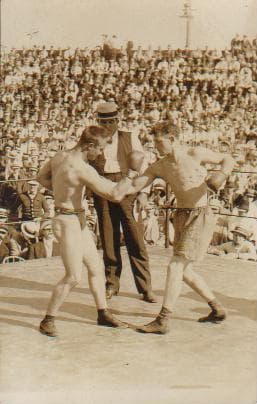 Edward Henry Greb (June 6, 1894 – October 22, 1926) was an American professional boxer. Nicknamed "The Pittsburgh Windmill", he was the American light heavyweight champion from 1922 to 1923 and world middleweight champion from 1923 to 1926. He fought a recorded 298 times in his 13 year-career, which began at around 140 pounds. He fought against the best opposition the talent-rich 1910s and 20s could provide him, frequently squaring off against light heavyweights and even heavyweights.Greb had a highly aggressive, very fast, swarming style of fighting and buried his opponents under a blizzard of punches. He was elusive with very good footwork to jump in and out on opponents. He was also a master at dirty fighting and had no qualms about employing all manner of dubious tactics, such as spinning his opponent and using the heel and laces of his gloves. Greb often got as much as he gave and unbeknownst to the press continued to fight a number of matches even as he became blind in one eye, due to an injury suffered in an earlier match. The 'Pittsburgh Windmill' was also very durable, suffering only 2 TKO losses in his whole career. The first was in his seventh bout when he was knocked out by an opponent who heavily outweighed him, the second happened 3 years later when Greb broke the radius of his left arm. Greb finished the round but was unable to continue the fight. Greb's ultimate weakness may have been his lack of knockout power; although he was able to hurt and bust up many opponents due to the constant onslaught of clean punches he landed on them, he rarely stopped them. He launched a vicious beating on Gene Tunney on two separate occasions, cutting him and hurting him badly, but was unable to knock him out both times. It was the same process with many opponents.