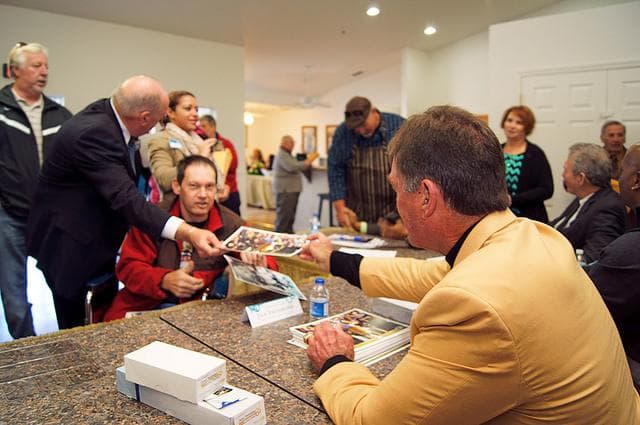 As teammates have said he lived above a shop and kept his jersey, eyeblack and helmet on, and sometimes when they would go to breakfast on game day he would show up wearing his jersey, helmet and Eye black.