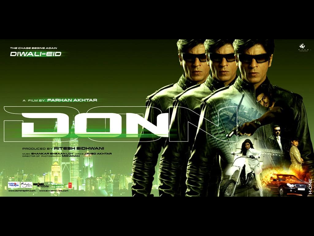Don is a 2006 Indian action thriller film directed by Farhan Akhtar, and produced by Ritesh Sidhwani under Excel Entertainment. The film stars Shah Rukh Khan in a double role, opposite Priyanka Chopra, while Arjun Rampal, Boman Irani, Isha Koppikar and Om Puri appear in supporting roles. It is a remake of the 1978 film of the same name, and follows a simple man from the city of Mumbai in western India who is secretly recruited by a police officer to masquerade as "Don," the ruthless leader of an international chain of drug smugglers.